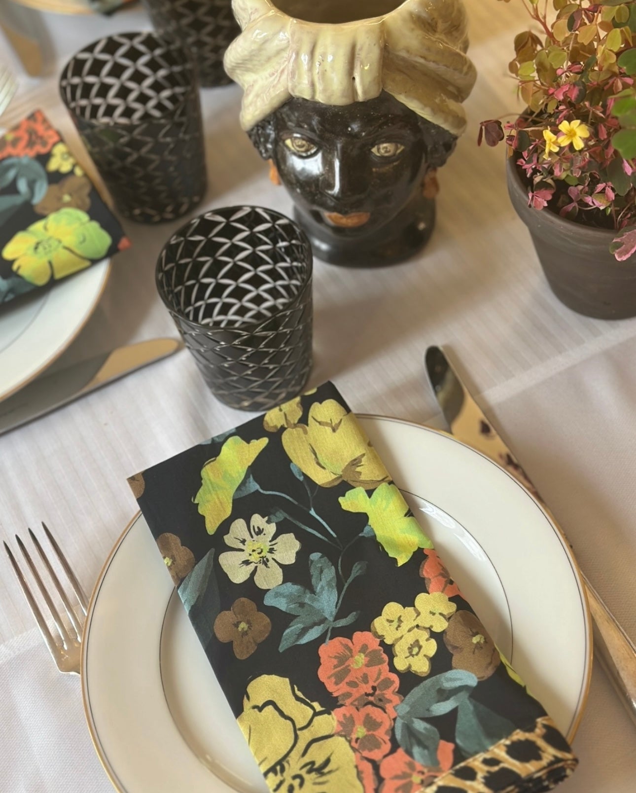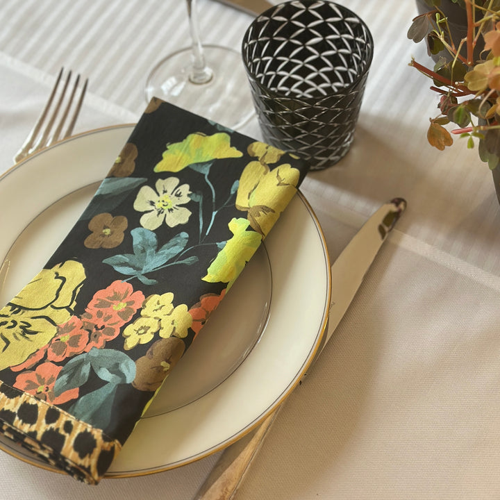 Telle une robe du soir de la collection été, ce motif sur fond noir apporte une touche de caractère affirmée à votre table.