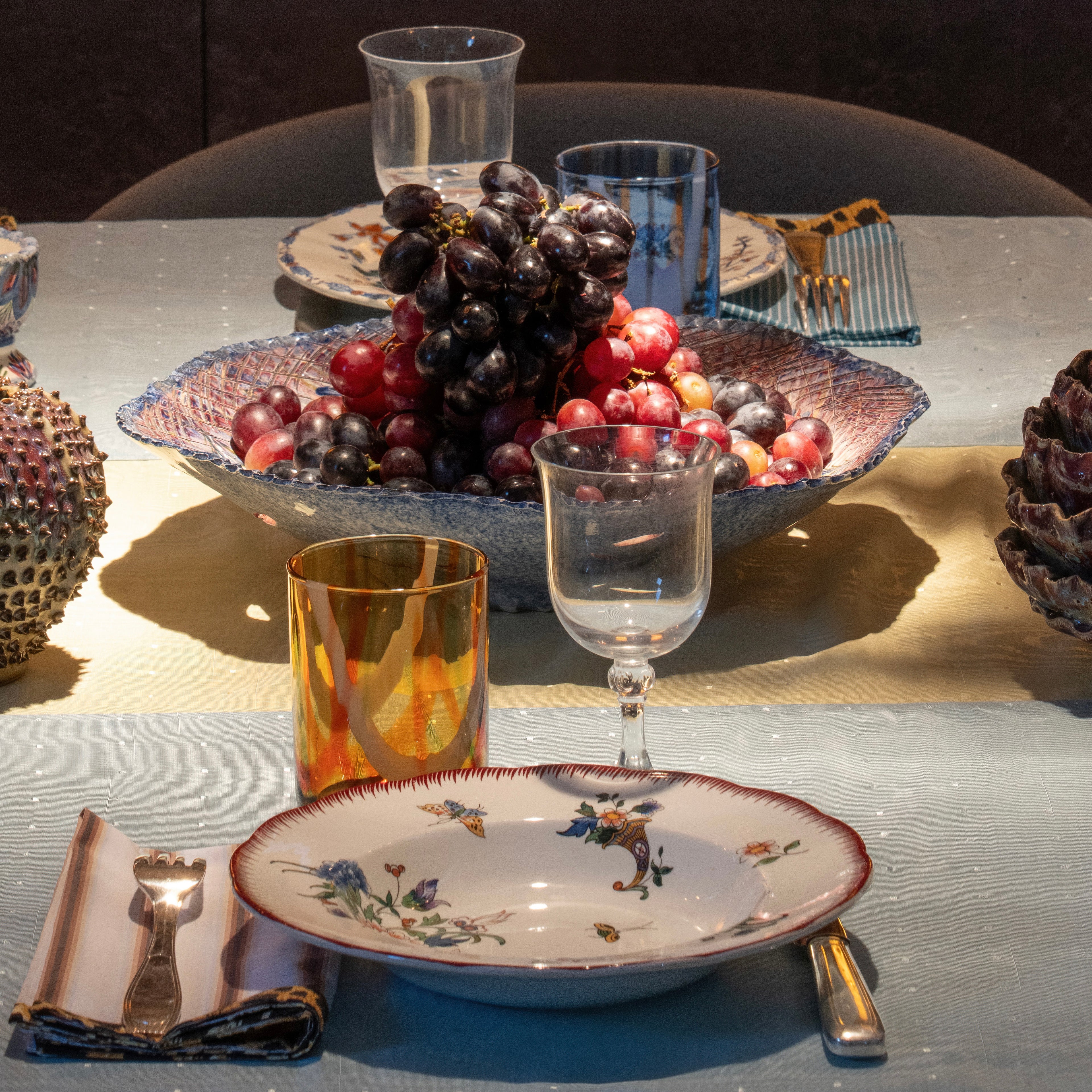 Emprunté à la Haute Couture, le moiré habille désormais la table avec la praticité d’une matière lavable en machine. Son aspect légèrement brillant s’associe avec le mat des serviettes léopard, à rayures ou unies. Sa version bicolore apporte une fantaisie chic à vos table, avec son chemin de table intégré. De quoi twister son raffinement avec la décontraction d’aujourd’hui.
